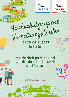 Du bist Teil einer Hochschulgruppe in NAJU oder NABU und willst dich mit anderen austauschen, Ideen & Projekte entwickeln und hast Lust auf Workshops zu Natur- & Umweltschutz?